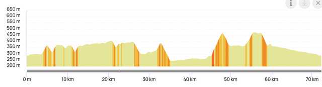 Distance 71km Dénivelé positif 874m