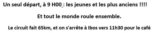 | :Sortie club Départs::Gr. A et B à 9h- Gr. C à 9h05 -Gr. D à 9h15 |