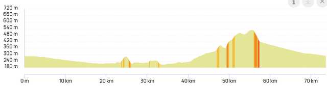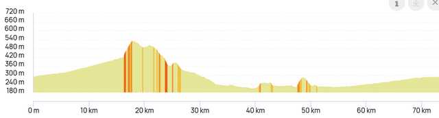 | Distance 73km Dénivelé positif 498m |