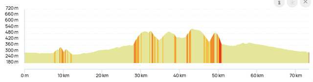 | Distance 73km Dénivelé positif 704m |