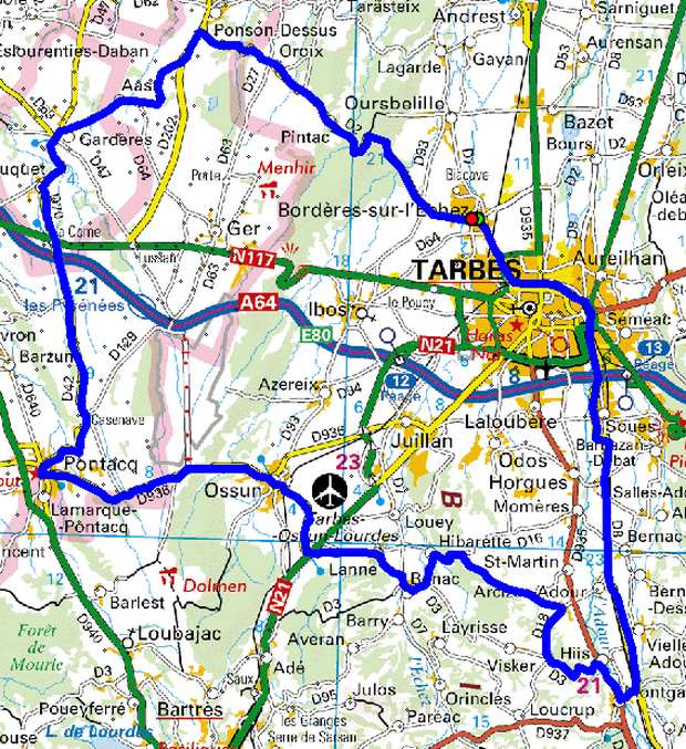 | Bordères,Pintac, Oroix, Aast, Gardères, Luquet, Pontacq, Ossun, D16, Lanne, Bénac, Hibarette, Bastourra, TaD crois.D86-D18, D3, Hiis, D935, Montgaillard, Séméac, Tarbes, Bordères . |