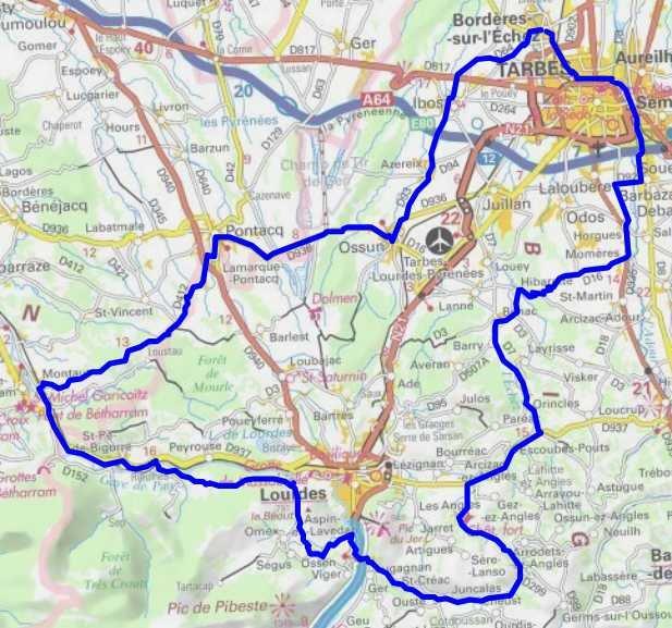 | B/E, Séméac,, D92, Horgues, Momères, TàD, D16, Hibarette, Bénac, Orincles, D937, Arcizac-ez-Angles, D7, Juncalas, St Créac, Pont-Neuf, Aspin en Lavedan, D13, Ossen, Ségus, Omex, D13, Lourdes, D937, ST Pé, D937, TàD, Montaut, TàD Direction Lamarque-Pontacq, Pontacq, Ossun, Azereix, Ibos, B/E |