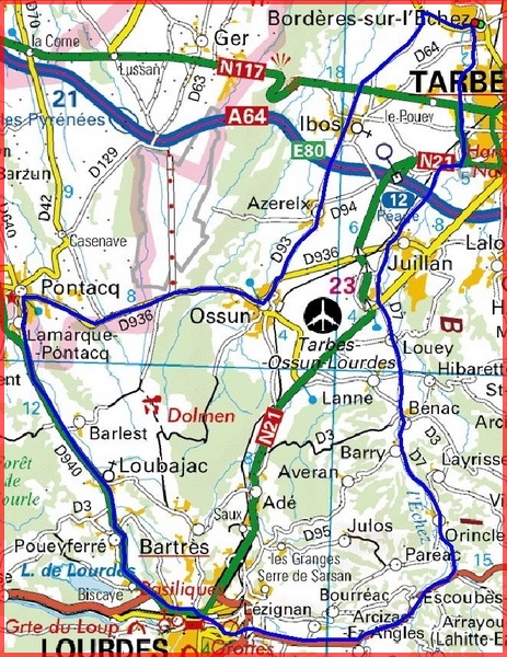 | Bordères, Ibos, Juillan, Louey, Bas de Loucrup, Lourdes, Pontacq, Ossun, Ibos, Oursbelille, Bordères |