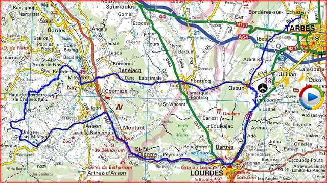| Bordères, Ibos, Azereix, Ossun, prendre D16, Adé, Lourdes, St Pé de Bigorre, Lestelle-Bétharram, TaG crois. D937-D35, Asson, Bruges-Capbis-Mifaget, Lys, TaD crois. D232-D287, TaG crois. D287-D388, Haut de Bosdarros, D288, Arros de Nay, TaD D936, Nay, Coarraze, Bénéjacq, Labatmale, Pontacq, Ossun, Azereix, Ibos, Bordères. |