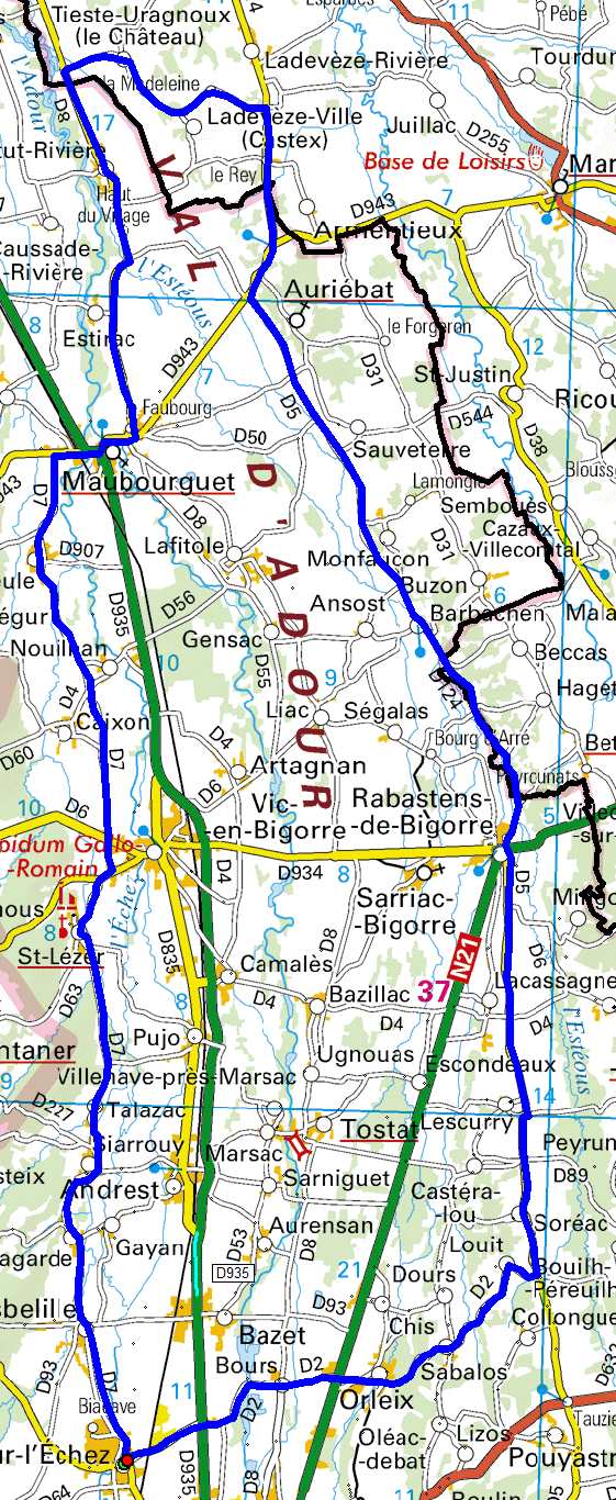 Bordères , Lagarde , Vic , Maubourguet , Estirac, Labatut-Rivière, TaD Crois D173-Chemin de la Crête, Tieste-Uragnous,, Ladevèze-Ville, TaD Crois. D562-D14, Armentieux, Auriébat, Sauveterre , Rabastens , bas de Lescurry , Louit ,Sabalos ,Orleix, Bours ,Bordères |