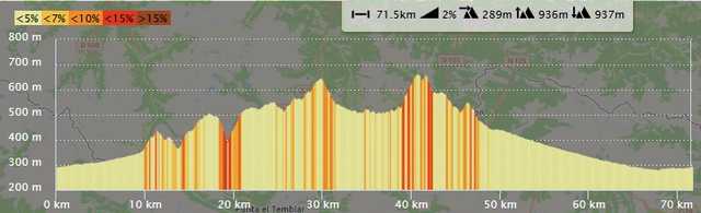 Distance 72km - Dénivelé positif 927 m |