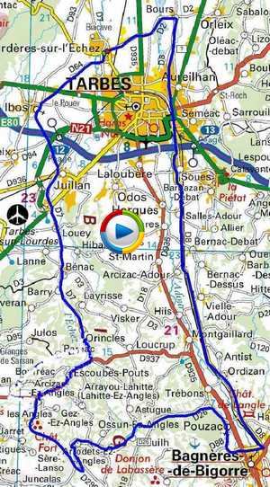 | Bordères, Ibos, Juillan, Louey, Bénac, Orincles,D407, Bas de Loucrup ,TaD crois D407-D937,Escoubès-Pouts, Arcizac-ez-Angles, TaG crois D937-D7, Les Angles, Col de Lingous, TaG crois D7-D26, Arrodets-ez-Angles,Neuilh, Pouzac,TaG D88, Bagnères de Bigorre, TaG D8, Ordizan, Bernac-Debat, Soues, Aureilhan, Bours, Bordères |