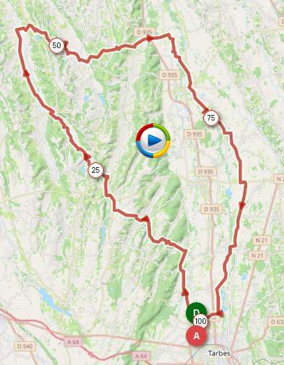 | Bordères, Oursbelille, Lagarde, Siarrouy, Montaner, Pontiacq-Villepinte, Bentayou-Séré, Lucarré, Peyrelongue-Abos, Bas de Lembeye, St-Jean-Poudge, Cadillon, D298, Monpezat, Lascazères, Caussade-Rivière, Estirac, Maubourguet, Lafitole, Gensac, Liac, Bazillac, Tostat, Bours, Bordères |