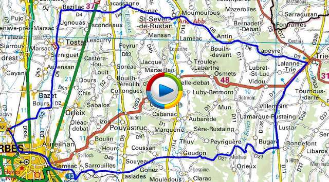 Bordères, Bout du Pont, Séméac, Laslades, Goudon, Bonnefont, Lustar, Trie su Baïse, Lapeyre, Antin, Saint-Sever de Rustan, Sénac, Lacassagne, Bazillac, Tostat, Bours, Bordères |
