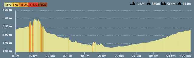 | Distance 101km Dénivelé positif 514m |