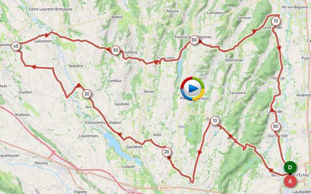 | Bordères, Pintac, Oroix, Ger,Aast, Route de Marque Darre, Gardères, Eslourenties-Daban, Arrien, Espéchède, Direction route de Morlaàs, TaD St Jammes, Gabaston, Lespourcy, Sedze-Maubecq, Bédeille, Escaunets, Pontiacq-Viellepinte, D62,St Lézer, Talazac, Lagarde, Oursbelille, Bordères |
