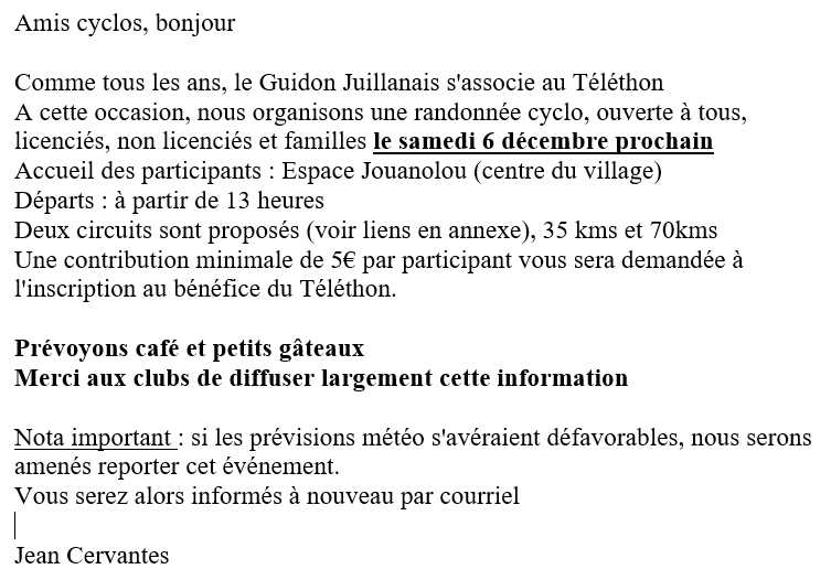 | Samedi 27 Septembre: randonnée cyclotouriste" La Galanaise"(matin) organisé par: |