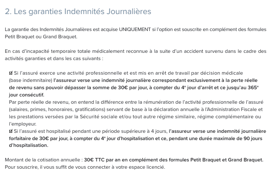 | S'informer de l’intérêt que présente la souscription de garanties d’indemnités contractuelles (décès, invalidité permanente, frais médicaux et assistance) pour les personnes pratiquant une activité sportive relevant de la FFvélo. |