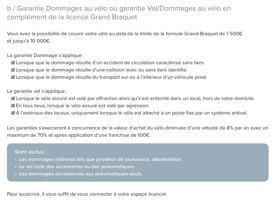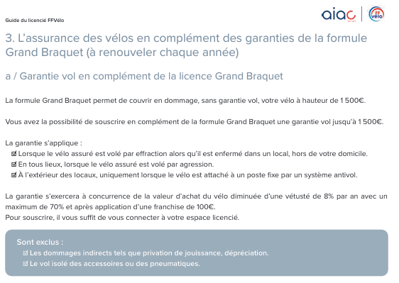 - Contrat Garantie : Vol du vélo/Dommages au Vélo en complément du Grand Braquet