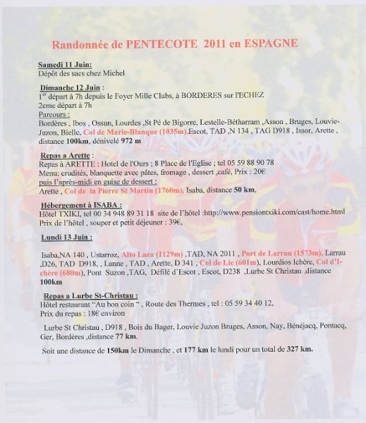 Randonnée de PENTECOTE en Espagne le DIMANCHE 12 JUIN 2011