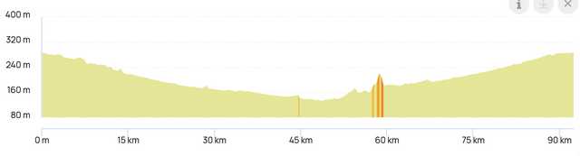 Parcours de 92km Dénivelé positif 317m