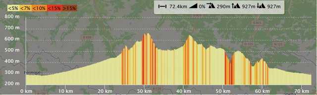 Distance 72km - Dénivelé positif 927 m |