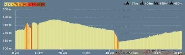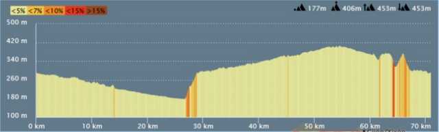 | Distance 70 km - Dénivelé positif 453 m |