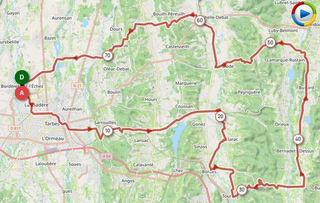 | Bordères, Bout du Pont, Séméac, Laslades, Goudon, Moulédous, Bordes, Peyraube, Tournay, Bernadets-Dessus, Bugard, Villembits, D1, Mun, Cabanac, Marseillan, Louit, Sabalos, Orleix, Bours,Bordères |