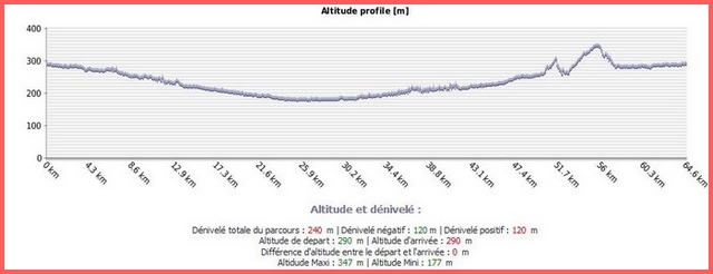 | Distance 66km - Dénivelé positif 294m |
