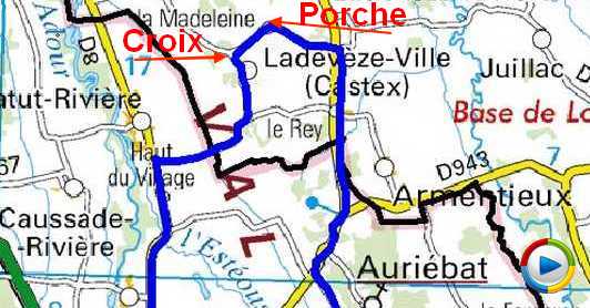 | Bordères, Oursbelille, Lagarde, Siarrouy, Talazac, St-Lézer, Vic en Bigorre, Larreule, Maubourguet, TaG crois. D943-D8, TaD crois. D8-Route du Manoir, Le Pécos, D562, Ladevèze-Ville, TaD à la Croix (Ligne de Crête), passer sous le Porche de La Madeleine, TaD crois. D225-D14, D14 puis D5, TaD crois D5-D943, TaG crois. D943-D5, Bas d’Auriébat, Barbachen, Rabastens, TaD crois. D5-D4, Bazillac, TaG crois. D4-D8, Ugnouas, Bours, Bordères. |
