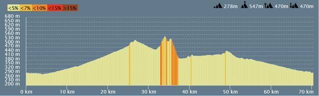 Distance 69km- dénivelé positif 460m