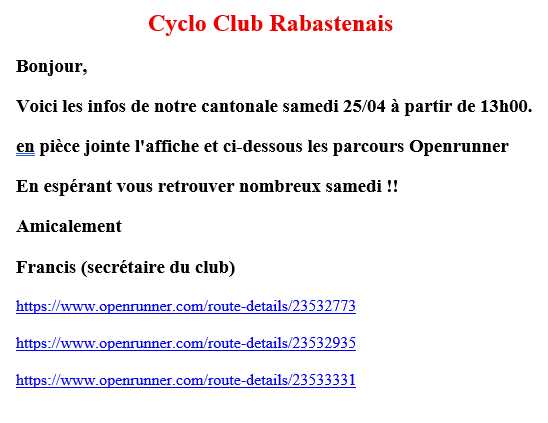 | Samedi 11 Avril :Brevet Audax 100km -Départ de Séméac -Séméac Évasion (Après-midi ) |