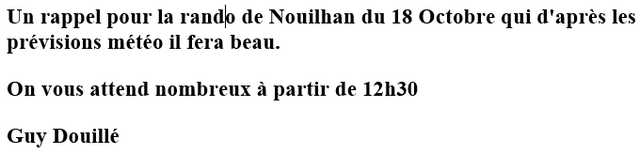 Samedi 18 Octobre : Randonnée Cyclo organisée par Amicale Laïque de Nouilhan (65500) |