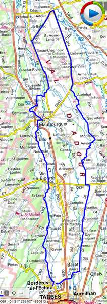 Bordères, Oursbelille, Lagarde, Talazac, St Lézer, Vic, Larreule, Maubourguet, Sombrun, Estirac, Labatut-Rivière, Belloc, Plaisance, Sauveterre, Monfaucon, Ansost, Liac, Bazillac, Tostat, Bours, Bordères