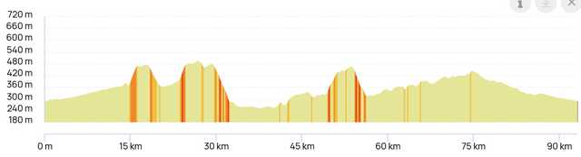 | Parcours de 93km Dénivelé positif 903m |