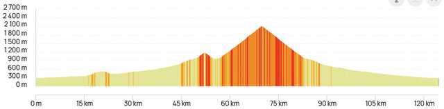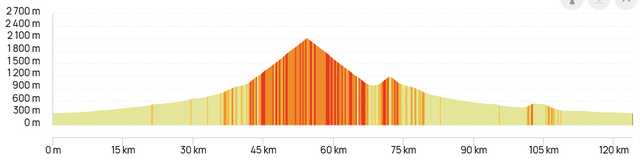 Distance 124km Dénivelé positif 2238m - Col du Tourmalet Est