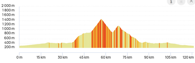 Parcours de 121km - Dénivelé positif 1869m |